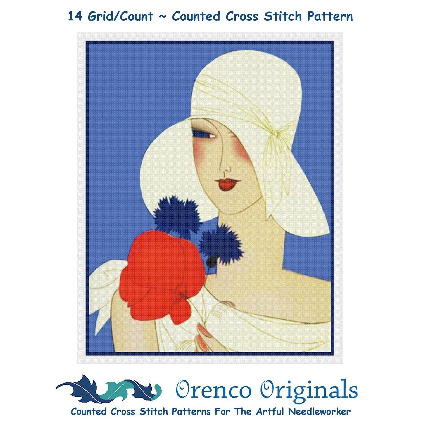 This pattern is charted for 14 grid/count fabric; finished size is 11 inches (154 stitches) by 14 inches (196 stitches); Fun DIY project. THIS IS NOT A KIT. No Floss or fabric are included. Purchase is for paper chart only. You will receive two patterns printed on bright white 11″ by 17″ paper; Chart#1 is a single page and Chart #2 is a 4 page enlarged chart to work from. Stitching should be fun! We are happy to customize the pattern to your specifications; We will rechart for different grid/fabric count or change the size; Orenco Originals patterns can be used to stitch a counted needlepoint project. Orenco Originals is happy to email you a supply list detailing the DMC Floss and number of skeins needed to complete the project so you can buy or organize floss to start stitching once your pattern arrives; email us after you order. Orenco Originals patterns are designed and created in the USA and we guarantee all patterns 100%; This item is a Counted Cross Stitch Pattern that you will use to sew and create a picture; it is NOT a finished product. This chart was inspired by an Art Deco Advertisement.