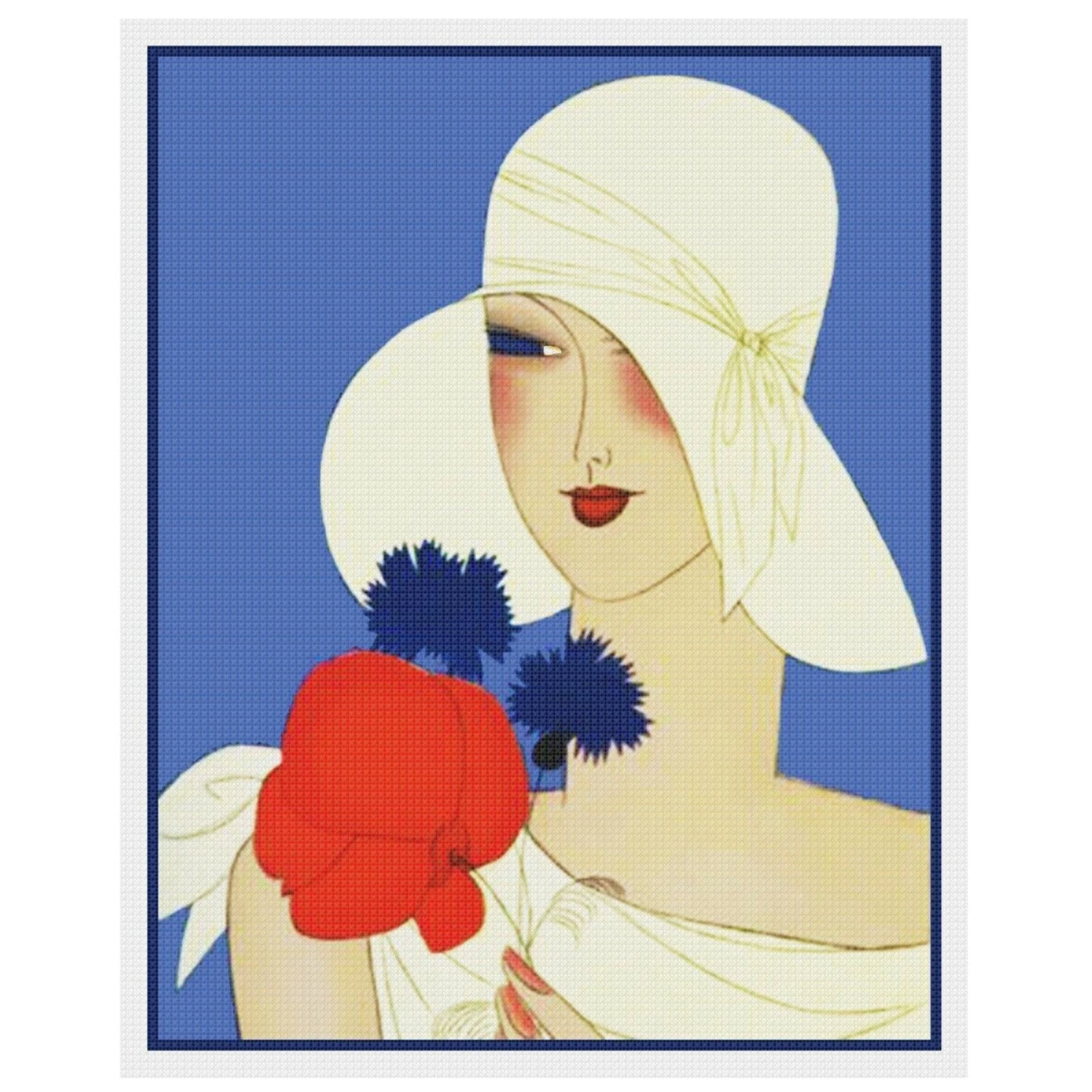 Art Deco Flapper Hat With A Red Flower Counted Cross Stitch Pattern
