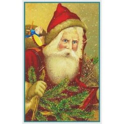 Victorian Father Christmas Santa In A Red Cape, Hat And Tree Counted Cross Stitch Pattern