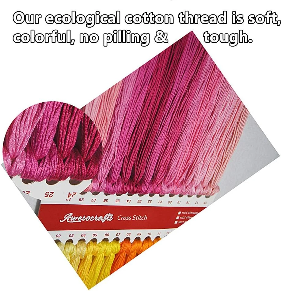 ✜ Easy & Fun: Perfect for all ages, beginners, kids, adults or advanced stitchers. Awesocrafts DIY cross stitching kit includes presorted cotton thread, top quality fabric(2 options), needles and English instructions