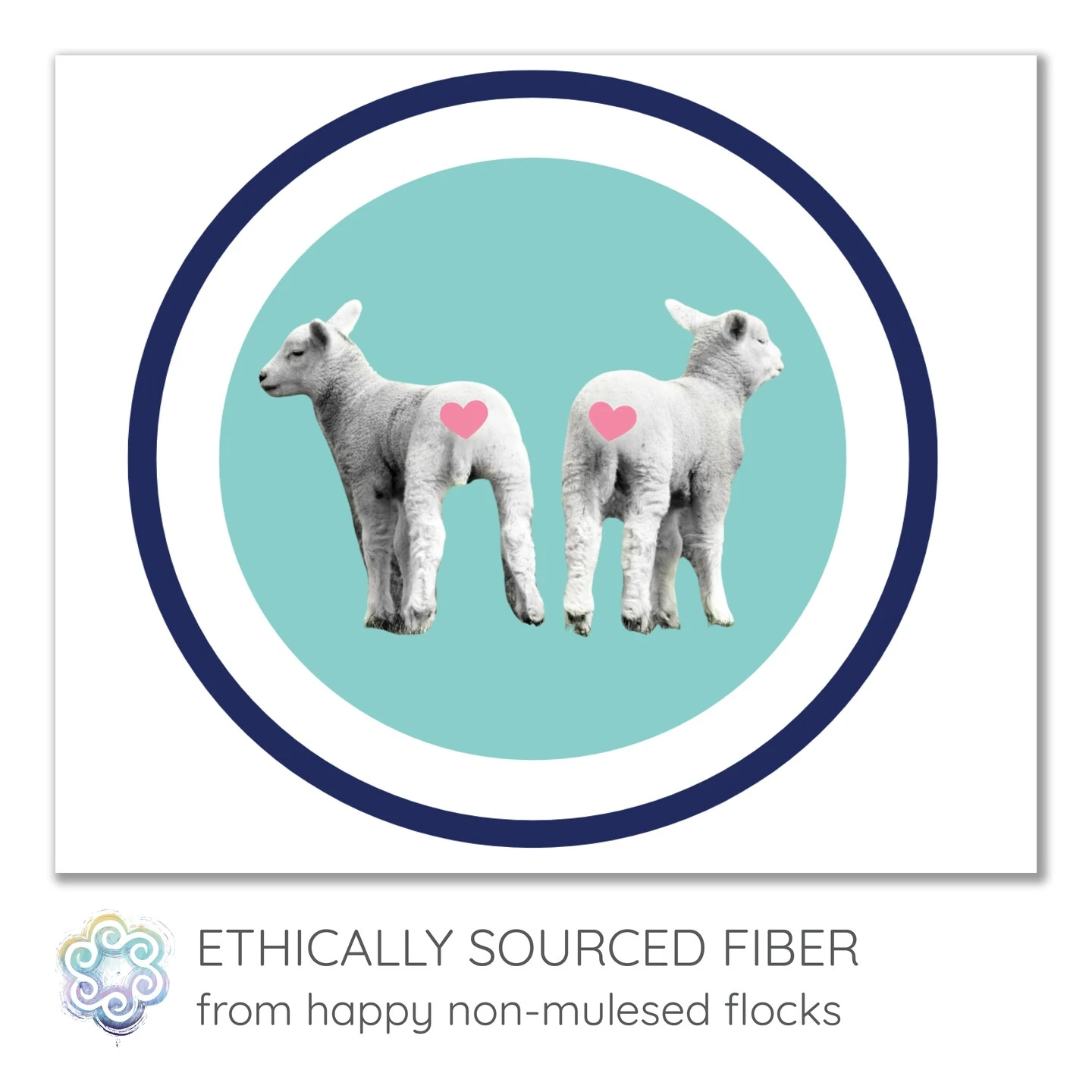 KIND TO SKIN & PLANET: Ethically sourced from non-mulesed flocks and sustainably dyed in accordance with the highest Oeko-Tex standards and GOTS/GRS certification. Cruelty Free.