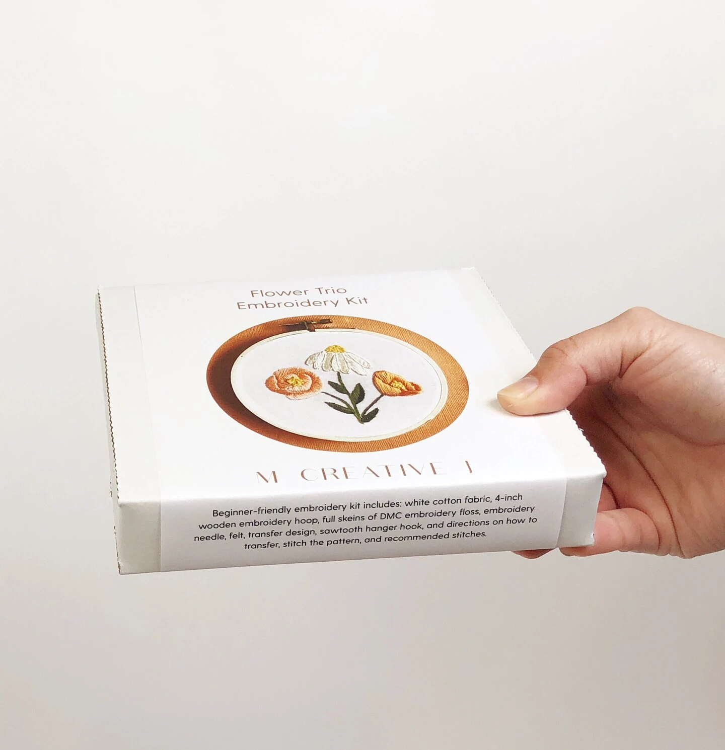 Inspired by flowers in my neighbors garden, this lovely floral trio is a botanical treat. Beginner-friendly and fun for stitchers of all skill levels, this hand embroidery kit includes all the materials you’ll need to create a delightful flower trio. Detailed photo and written instructions share how to use 4 different embroidery stitches to create these flowers.