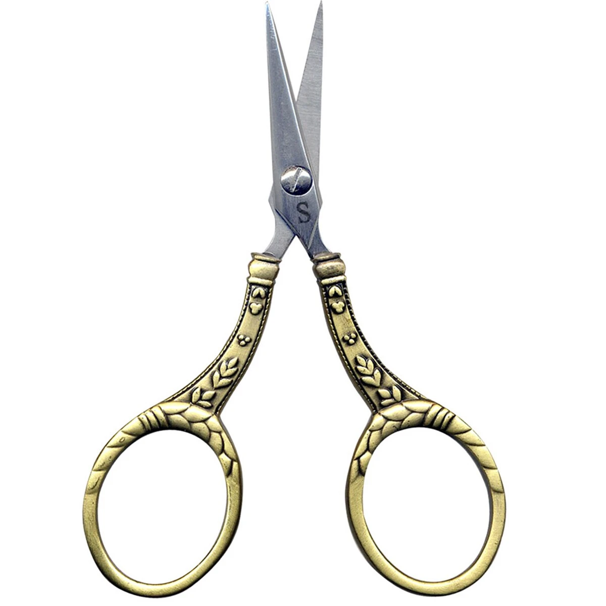 These stunning Round Handle Embroidery Scissors are great for trimming threads closely and accurately. The high-quality stainless steel blades feature sharp points for delicate needlework. Therefore you can get into small corners easily. These scissors measure 4″ long with elegant European styling. By having a pair of scissors that is four inches long, you’ll have more control and be able to snip closer to your work. Ideal for use for cross stitching, embroidery, sewing, and more. This pair of round-handle embroidery scissors are available in two colors, Silver and Gold.