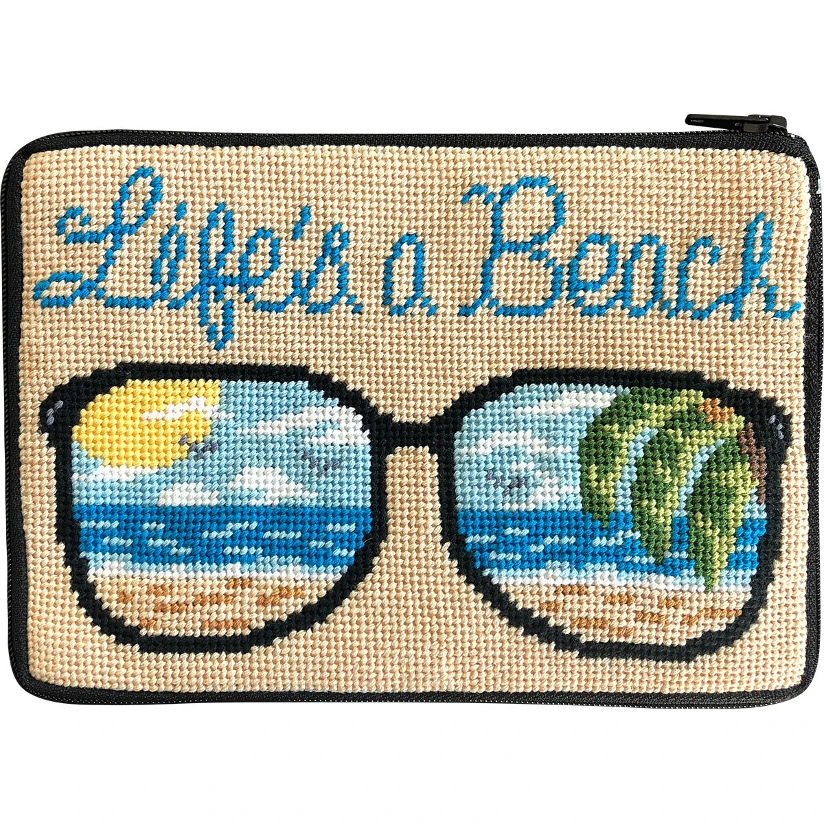Stitch & Zip Needlepoint Cosmetic Purse Kit- Life’s A Beach Multicolor