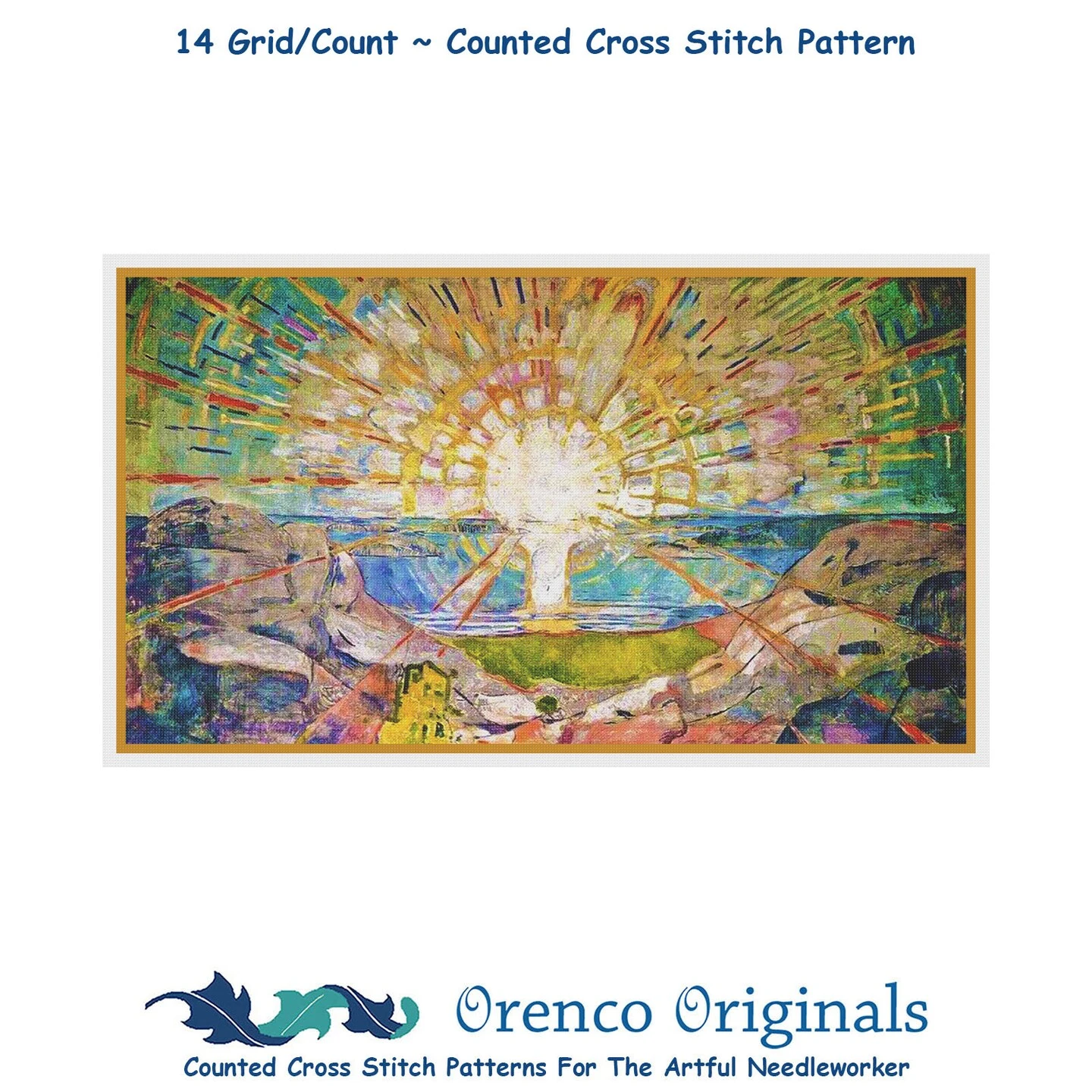 The SUN By Symbolist Artist Edvard Munch Counted Cross Stitch Pattern