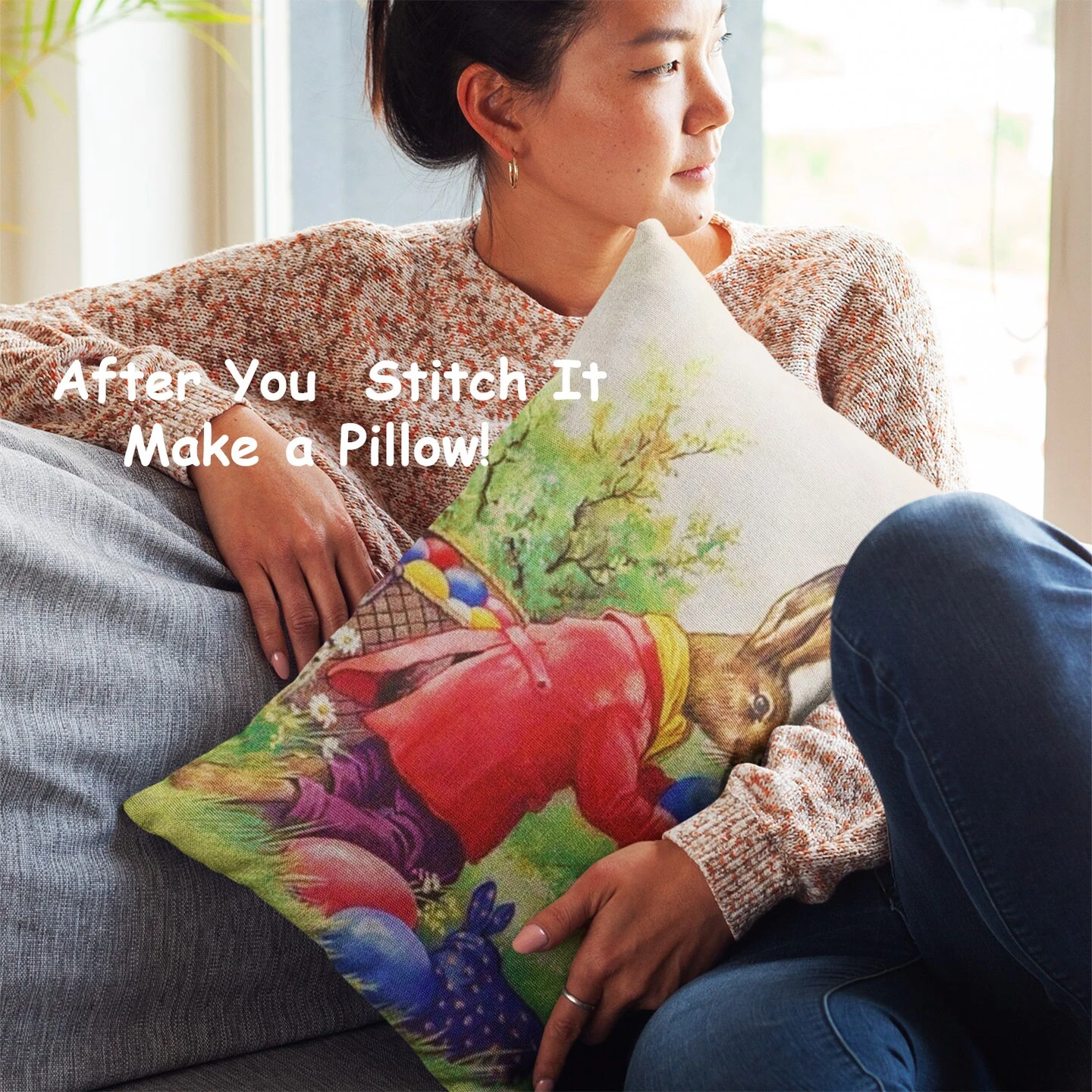 Vintage Easter Bunny Hiding Eggs Counted Cross Stitch Pattern